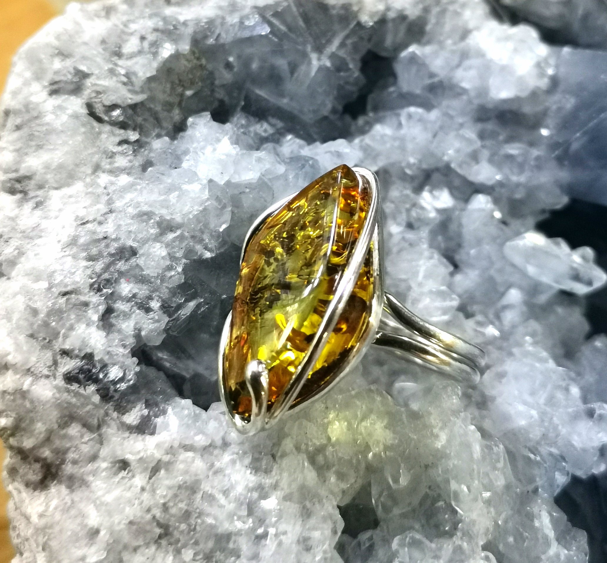 Bague Ambre (Baltique) et Argent 925.