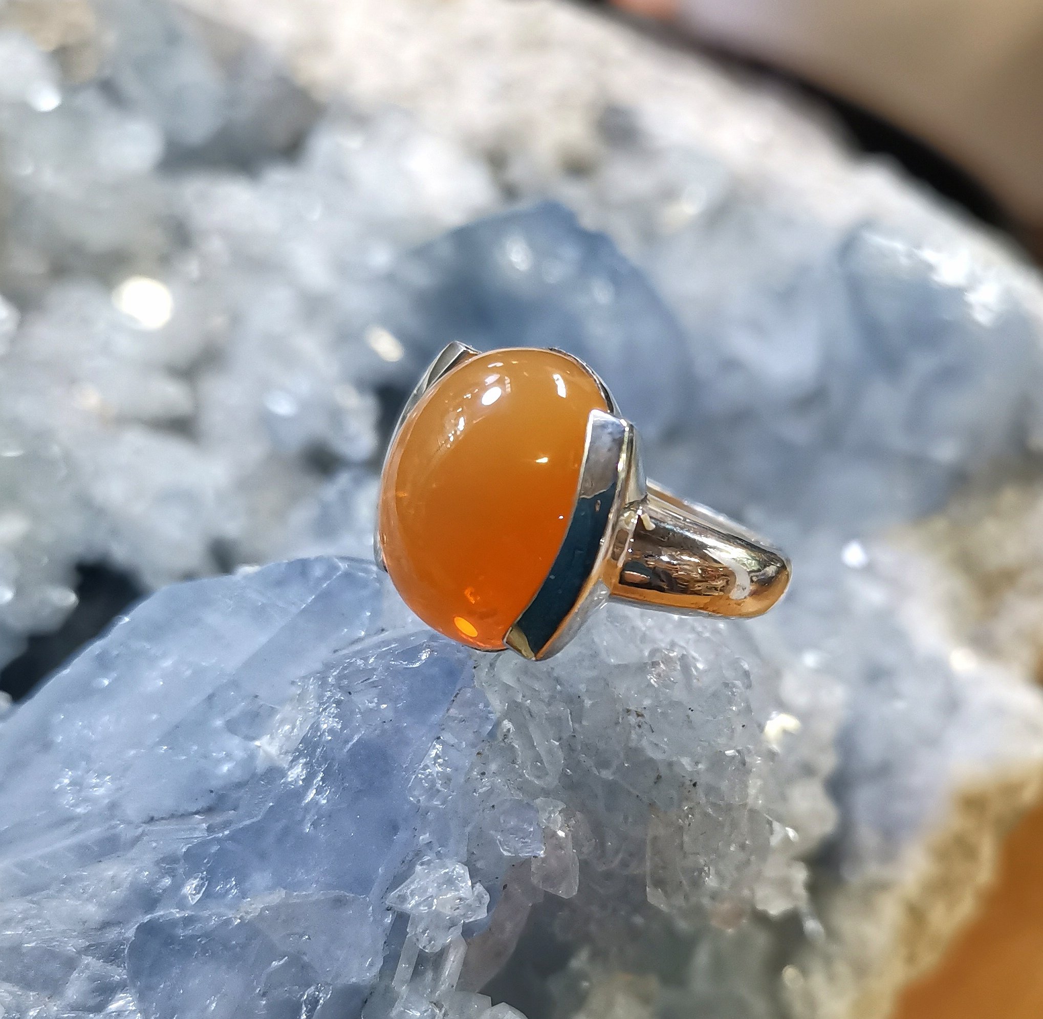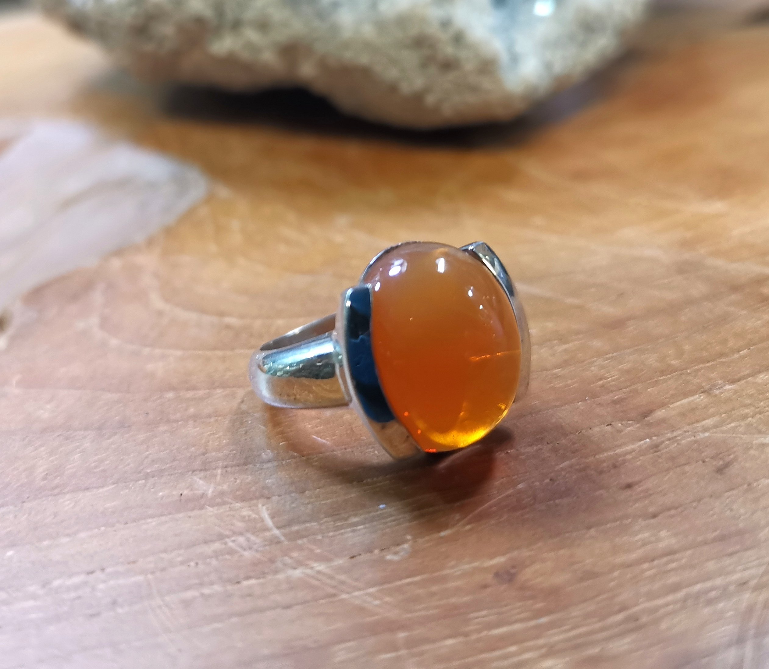 Bague de taille 57 en Opale de Feu (du Brésil) , sur une monture en Argent 925, très contemporaine.