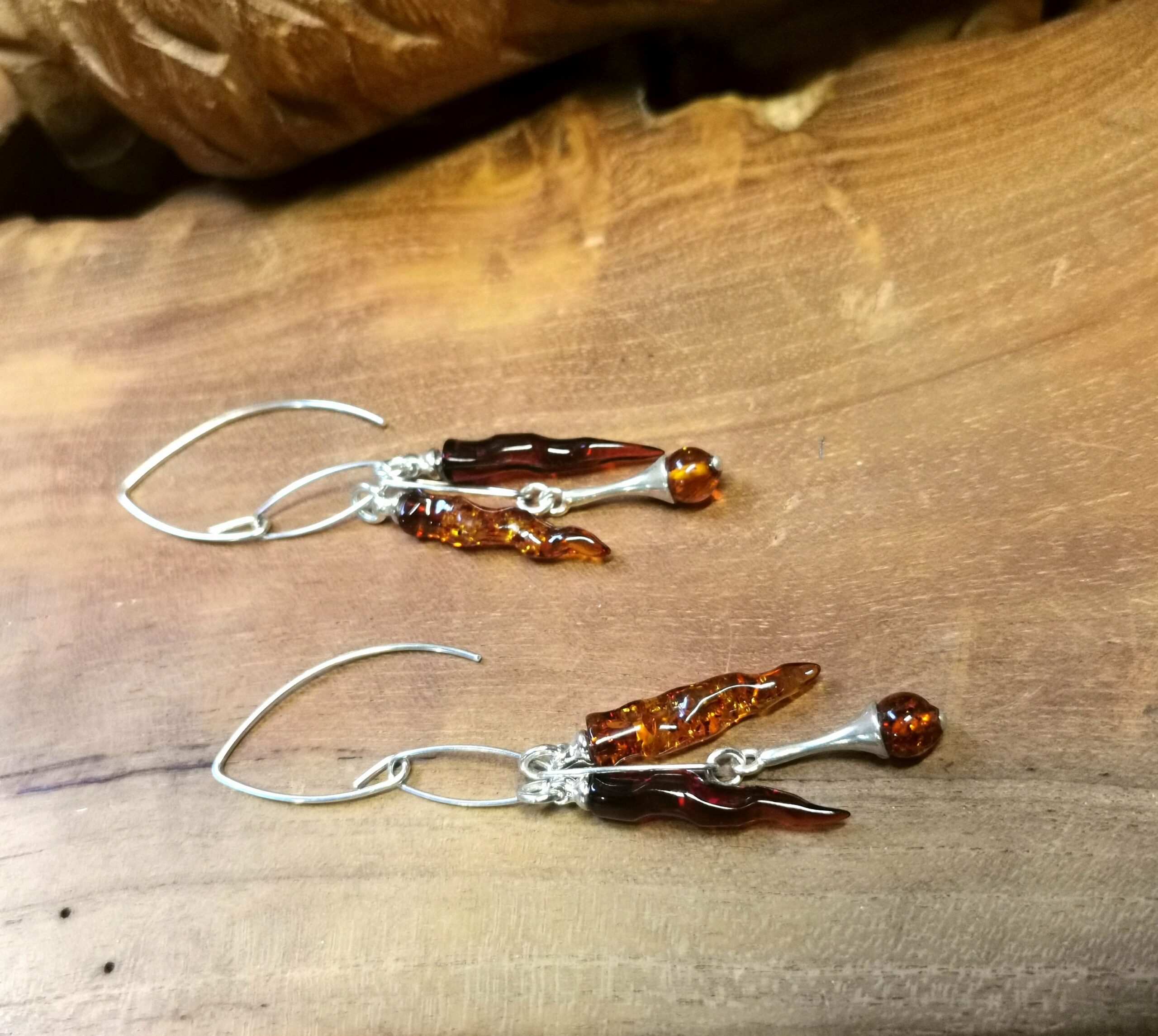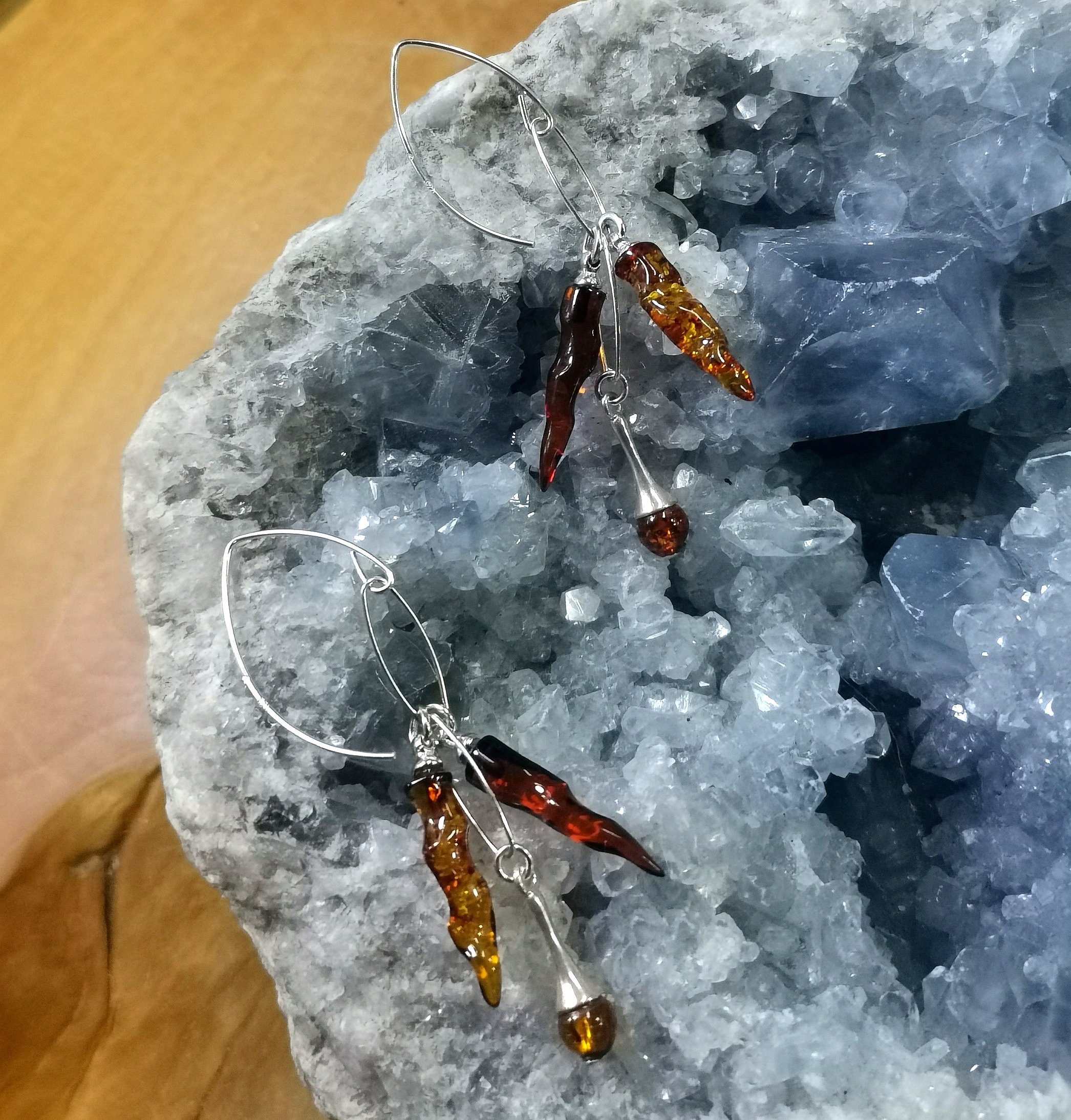 Longueur totale depuis l’accroche : 75 mm. La partie pendante en Ambre fait 52 mm.