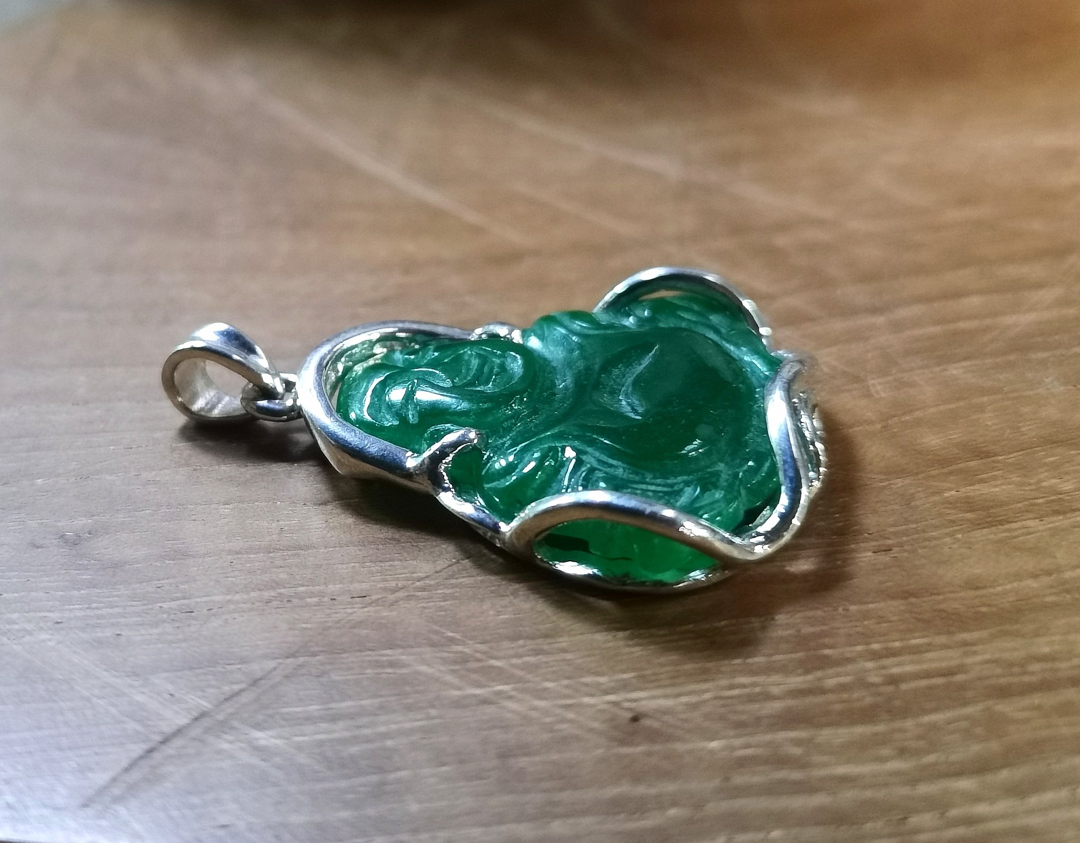 Pendentif  » Bouddha  » en Jade et Argent 925.